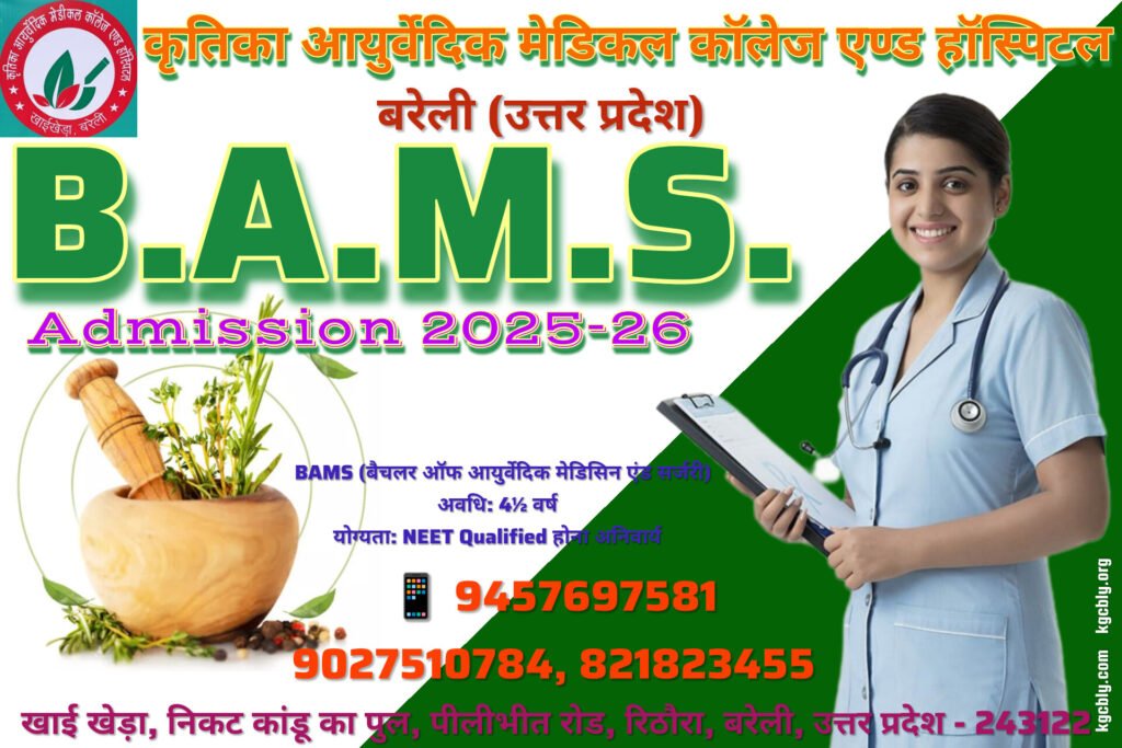 🎓 BAMS एडमिशन / काउंसलिंग 2025-26 शुरू – कृतिका आयुर्वेदिक मेडिकल कॉलेज, बरेली में प्रवेश के लिए करें आवेदन